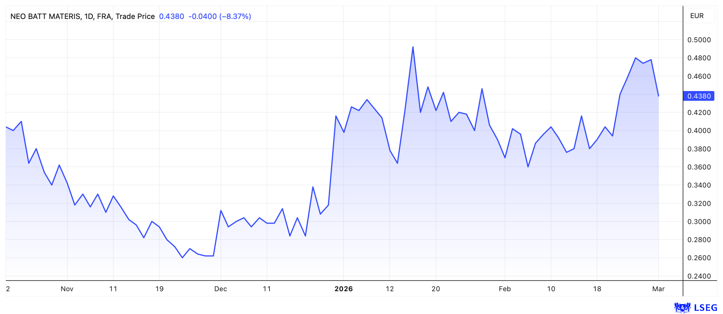 Der Westen braucht nicht nur bei Rohstoffen, sondern auch bei Schlüsseltechnologien wie Batterien Alternativen zu China. Genau diese bietet NEO Battery Materials und lässt dabei den Wettbewerb auch in Sachen Technologie alt aussehen. Gleichzeitig bringt man erst rund 115 Mio. CAD auf die Börsenwaage. Dies erscheint vor dem Hintergrund des riesigen Potenzials alles andere als teuer zu sein. Das Unternehmen verfügt über starke Partner und konkrete Aufträge. Beispielsweise wird ein asiatischer Drohnenhersteller die NEO-Batterien für seine Lastdrohnen nutzen. Ende 2025 wurden die Aufträge eines nordamerikanischen Fortune-500-Automobilherstellers und eines südkoreanischen Fortune-500-Automobilzulieferers gemeldet. Außerdem arbeitet NEO mit dem Korea Institute for Defense Industry (KOIDI) zusammen und ist damit Teil des Verteidigungsindustrie-Ökosystems des Landes. Daher kann es eigentlich nur eine Frage der Zeit sein, bis die Neo-Aktie deutlich anzieht.