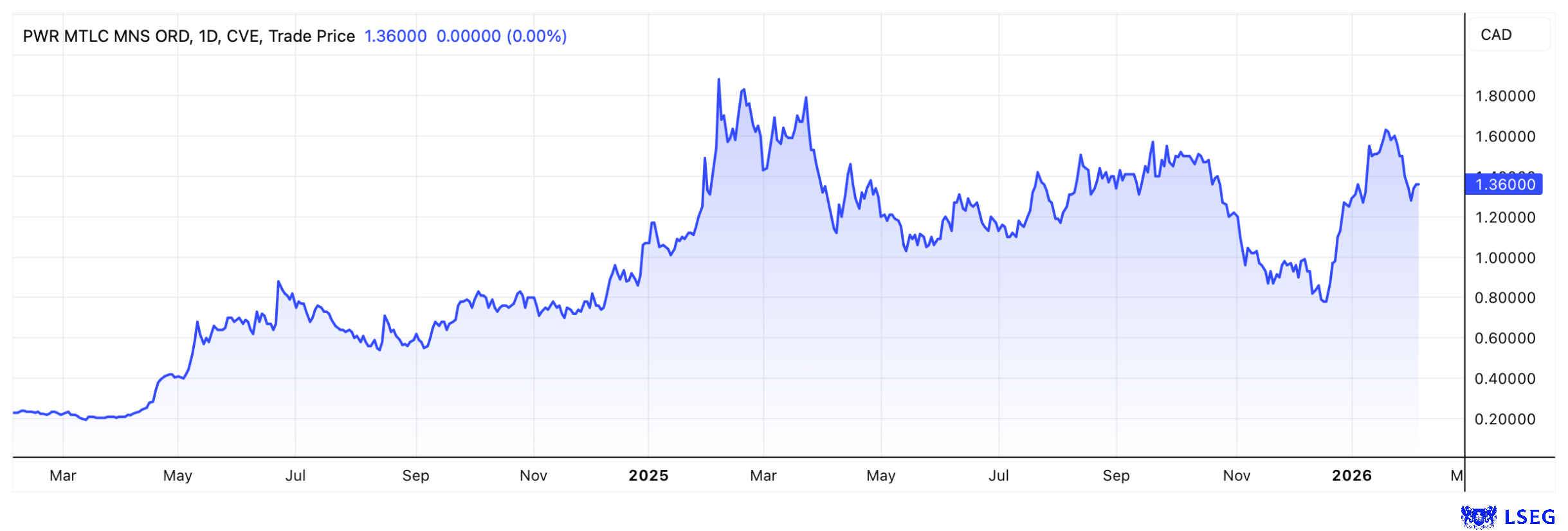 Power Metallic Mines ist eine echte Rohstoff-Perle. Die Ergebnisse der vergangenen Jahre sind spektakulär und spiegeln sich im Aktienkurs noch nicht ausreichend wider. Überzeugen auch die nächsten Bohrergebnisse, dürften die Kursziele der Analysten für die Aktie nur Zwischenstationen sein. Welche Dynamik ein Börsengang in den USA auslösen kann, hat Almonty Industries in 2025 eindrucksvoll aufgezeigt.